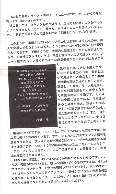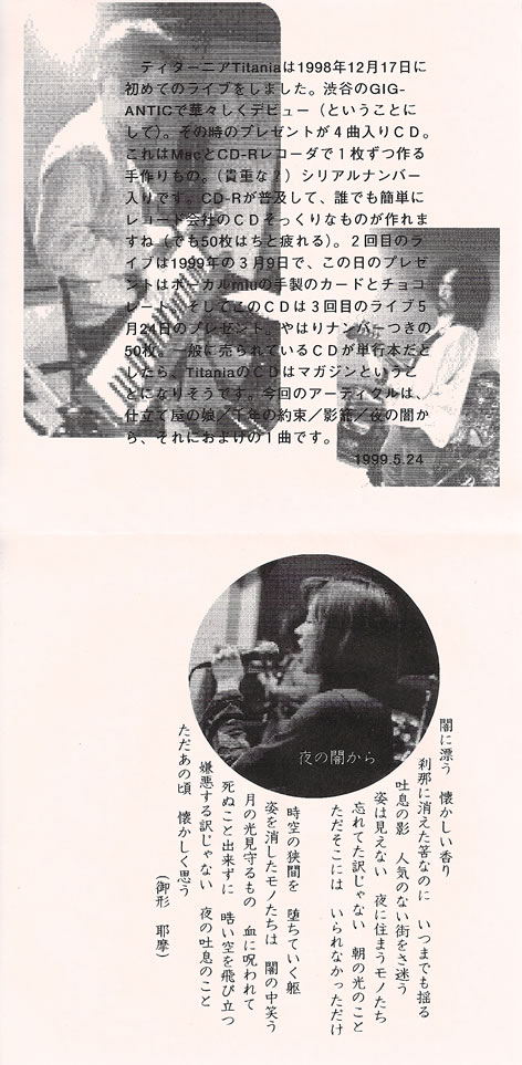 1998年5月から2001年の7月まで活動した、不思議感覚のポップス系バンド『Titania』(ティターニア)の記録